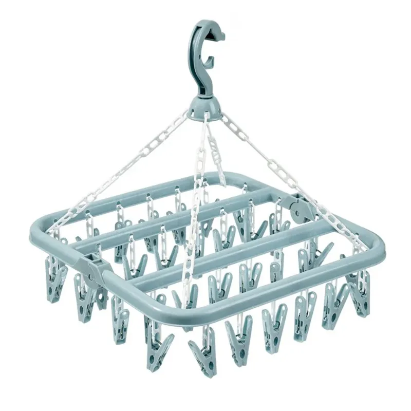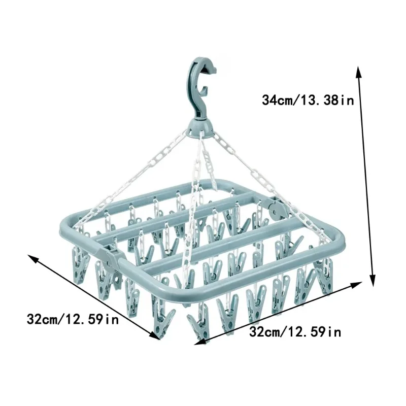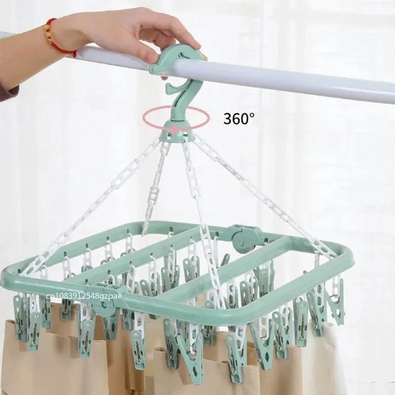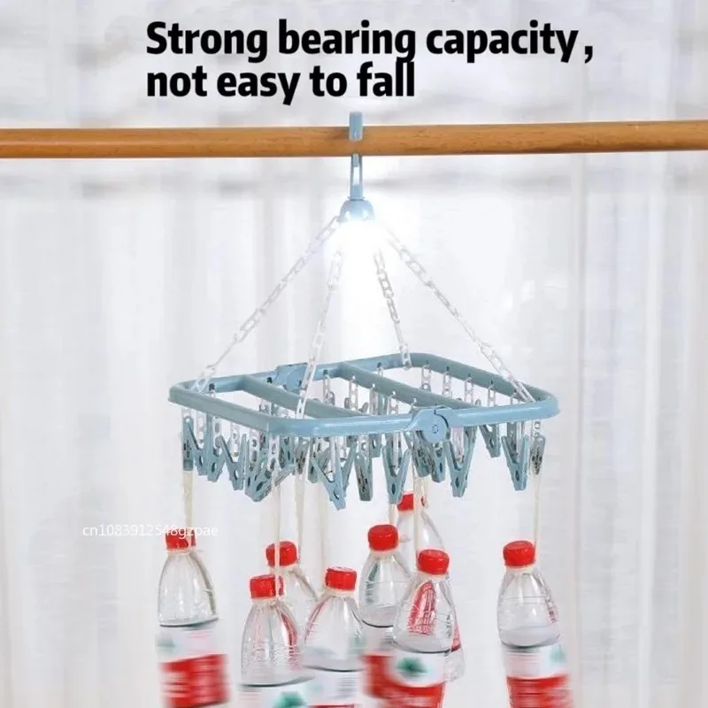 32 Clips Folding Clothes Dryer Hanger Windproof Socks Underwear Drying Rack Household Children Adults Storage Laundry Rack
